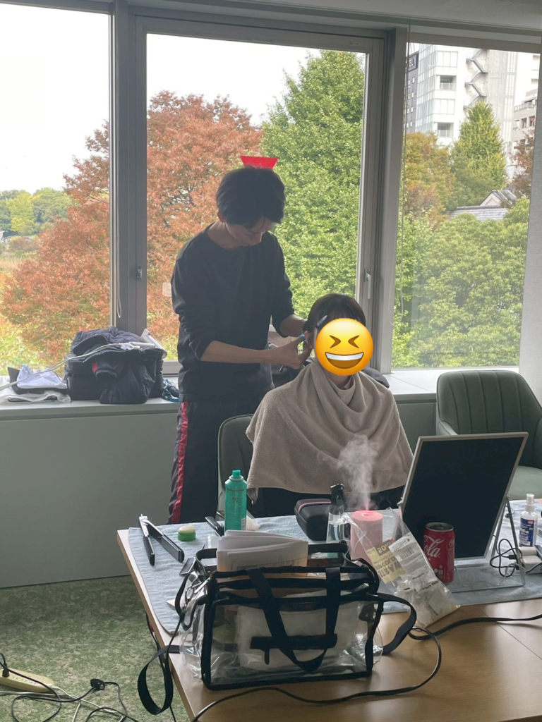ヘアメイク中のゲッターさん
